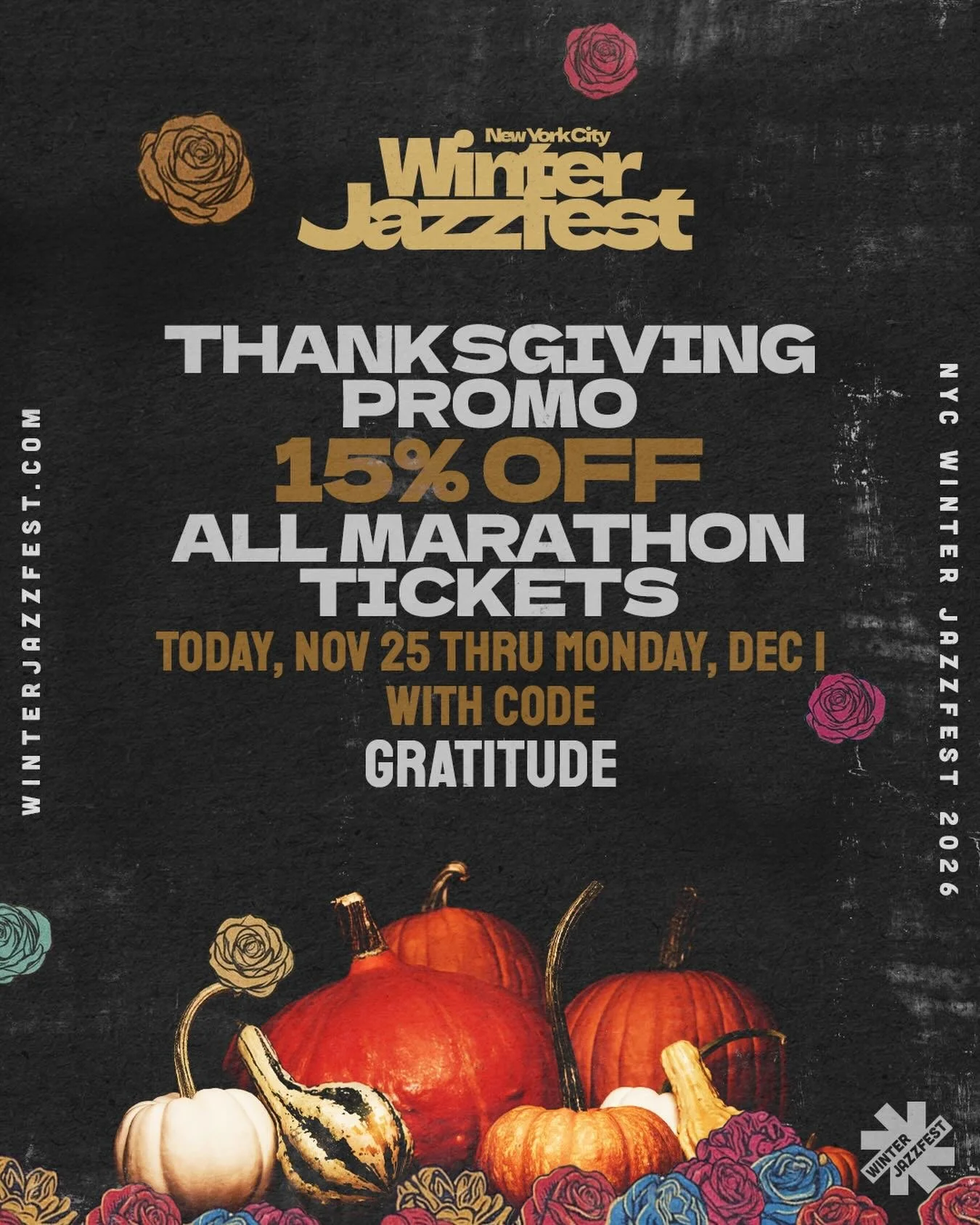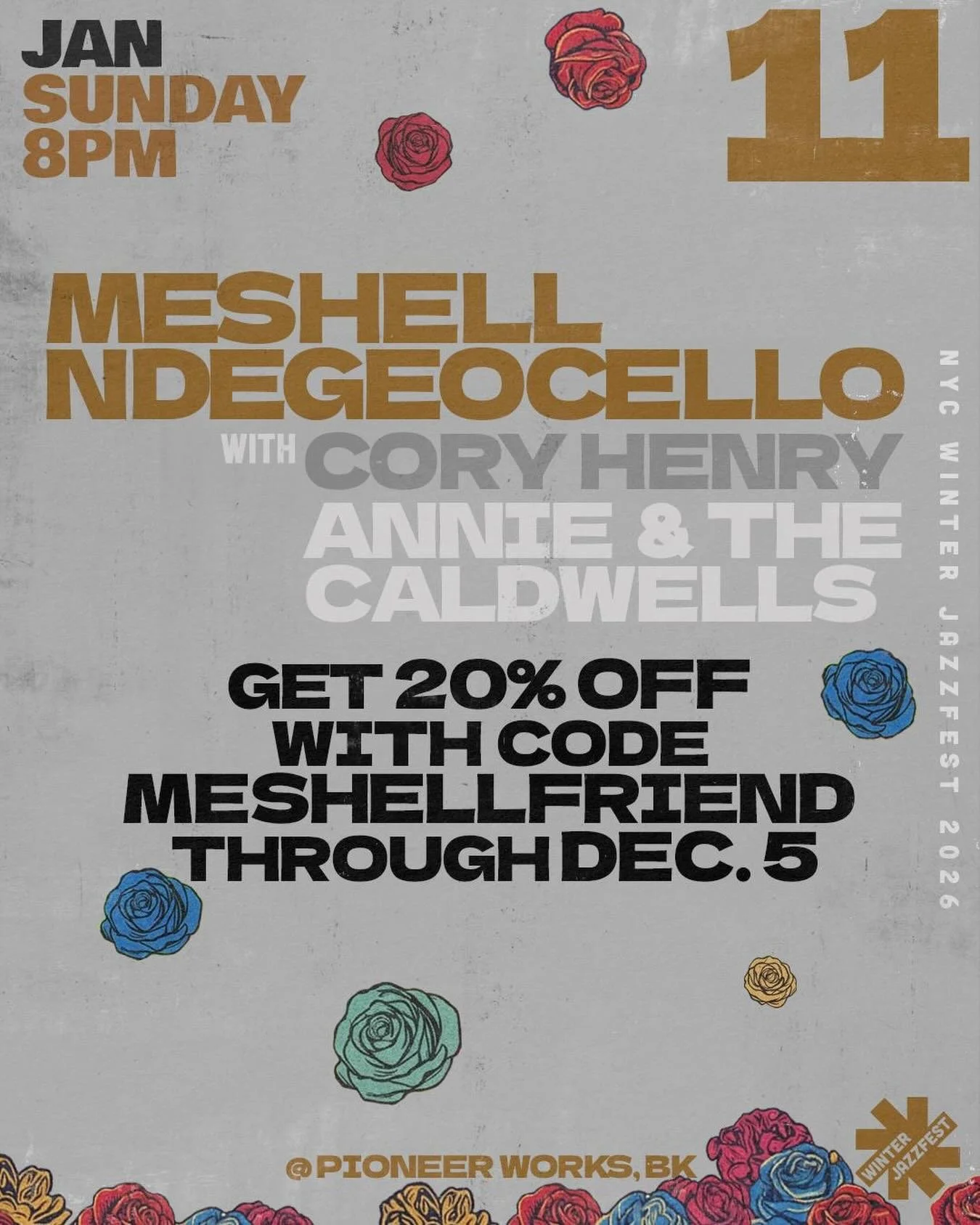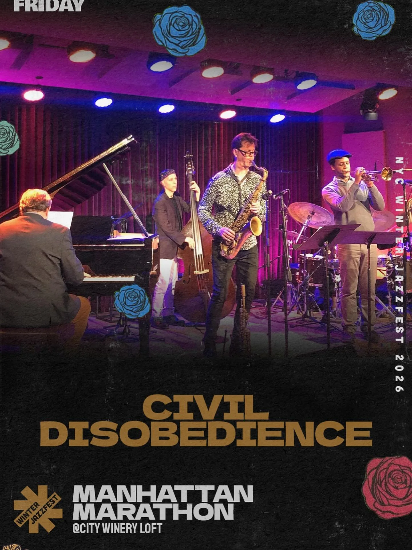 Our aesthetic pulls from the bold lines of political poster art, the brilliance of Afrofuturist visionaries, and the lush imagination of artists like Kerry James Marshall and Mati Klarwein. Flowers — especially roses — rise as symbols of beauty, protest, celebration, and mourning. They bloom as sound bursting from instruments, as threads weaving musicians together, as offerings of joy in defiance of silence. At the center: two hands rise up, cupped open — offering and receiving — just like jazz itself, a prayer carried on rhythm. As current powers attempt Black erasure, this festival centers Black American music, where protest is joy, music is power, and gathering is resilience.