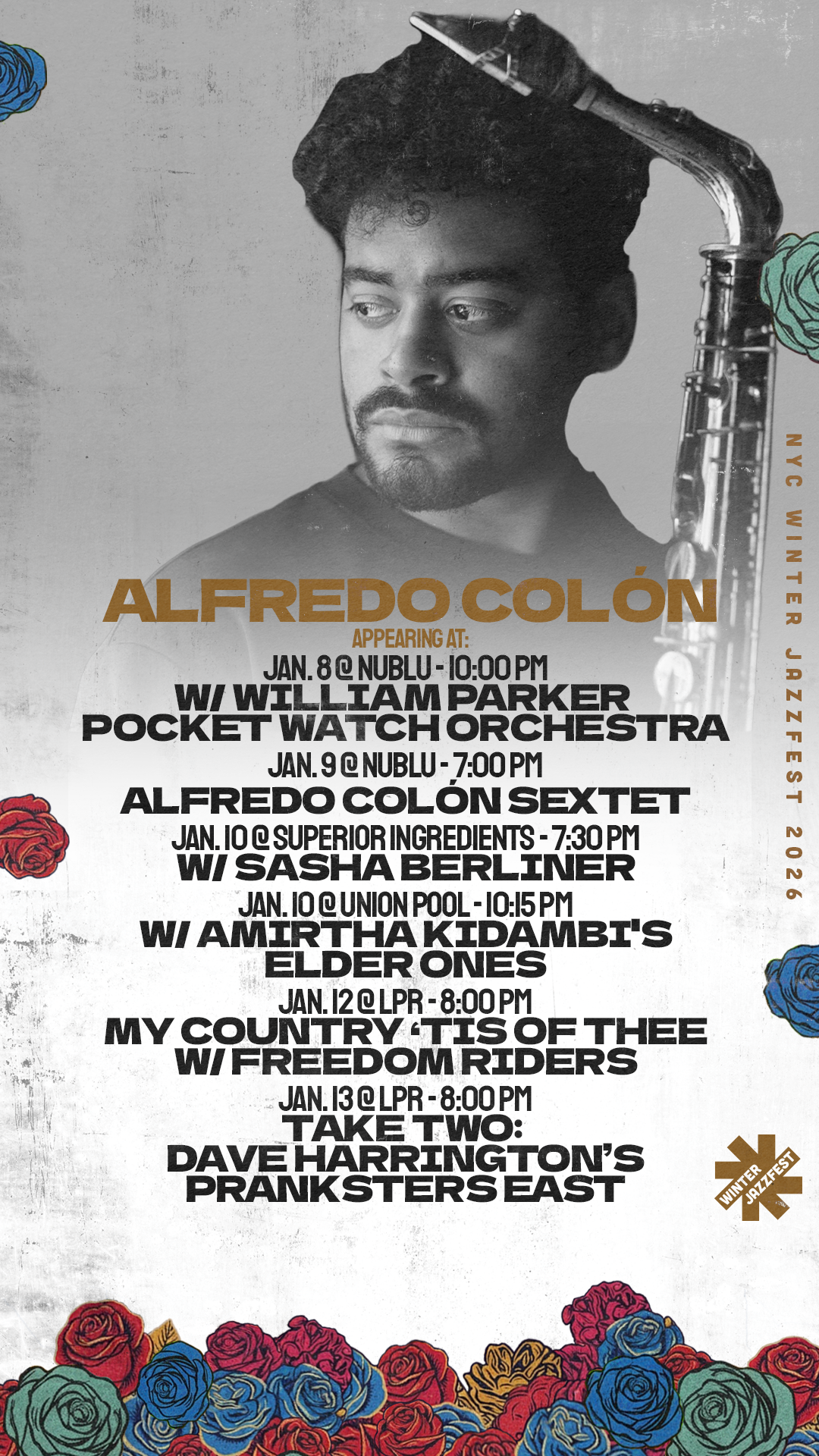 Dominican-American saxophonist and composer Alfredo Colón is a proud New York City native. His playing has been described as authoritative and fiery yet mournful and melodic. Drawing on his interest in Dominican folklore and the works of visionary saxophonists Albert Ayler and Ornette Coleman, Colón creates a musical atmosphere that highlights beauty by framing it in disarray.