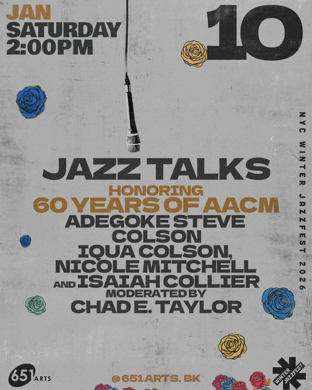 Join us for an engaging panel discussion featuring renowned musicians and AACM members Nicole Mitchell, Isaiah Collier, and early members of the AACM Iqua & Adegoke Steve Colson, with the esteemed Chad Edward Taylor serving as moderator. This thought-provoking dialogue will delve into the evolution of Black Creative music music and the influence of the AACM (Association for the Advancement of Creative Musicians) on contemporary soundscapes Over the last 60 years. Our panelists will share insights into their artistic journeys, explore their creative processes, and discuss the collaborative spirit inherent in the AACM community. Don’t miss this opportunity to witness a rich exchange of ideas and experiences among some of today's most influential voices in music!