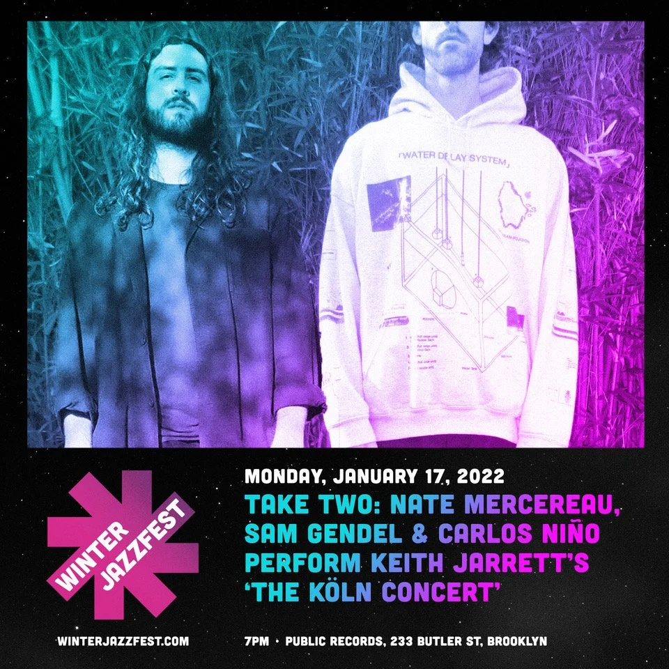 Pique-nique Recordings and NYC Winter Jazzfest are proud to present Nate Mercereau, Sam Gendel, and Carlos Niño performing Keith Jarrett’s ‘The Köln Concert’ in its entirety. This event is part of Pique-nique Recordings’ ‘Take Two’ series, an immersive deep-listening night consisting of two elements: an uninterrupted, high-quality playback of a seminal jazz album, followed by a modern-day reinterpretation by forward-thinking musicians. Known for creating serene soundscapes through their own individual projects, Mercereau, Gendel, and Niño will perform as a trio for the first time, combining modulated electronics, luscious percussion, and a spiritually-informed musicality throughout this improvised take on an iconic record.